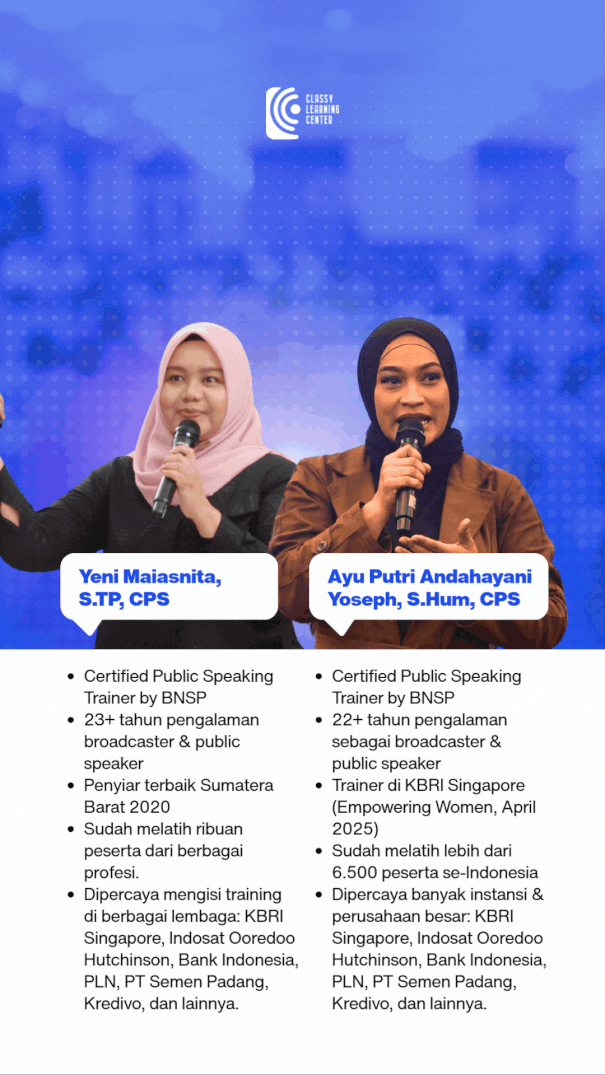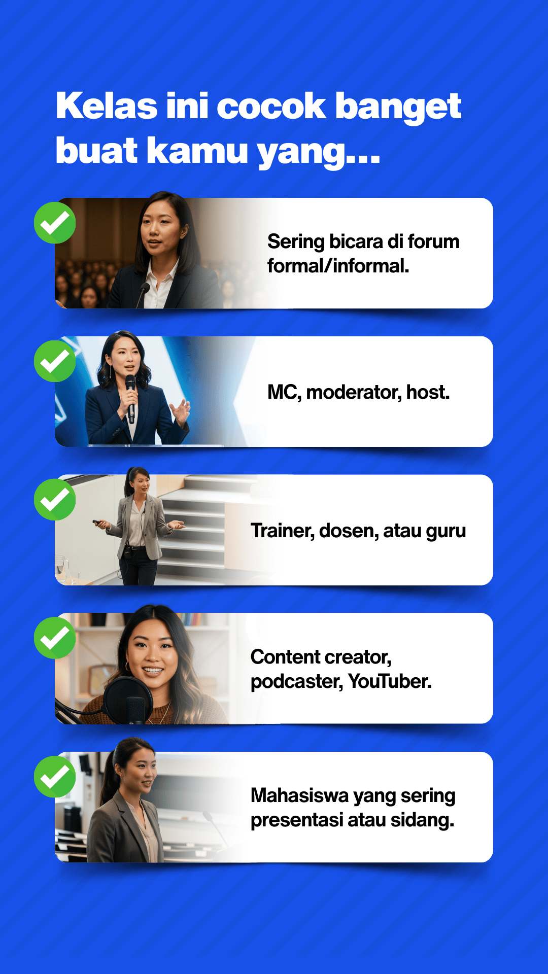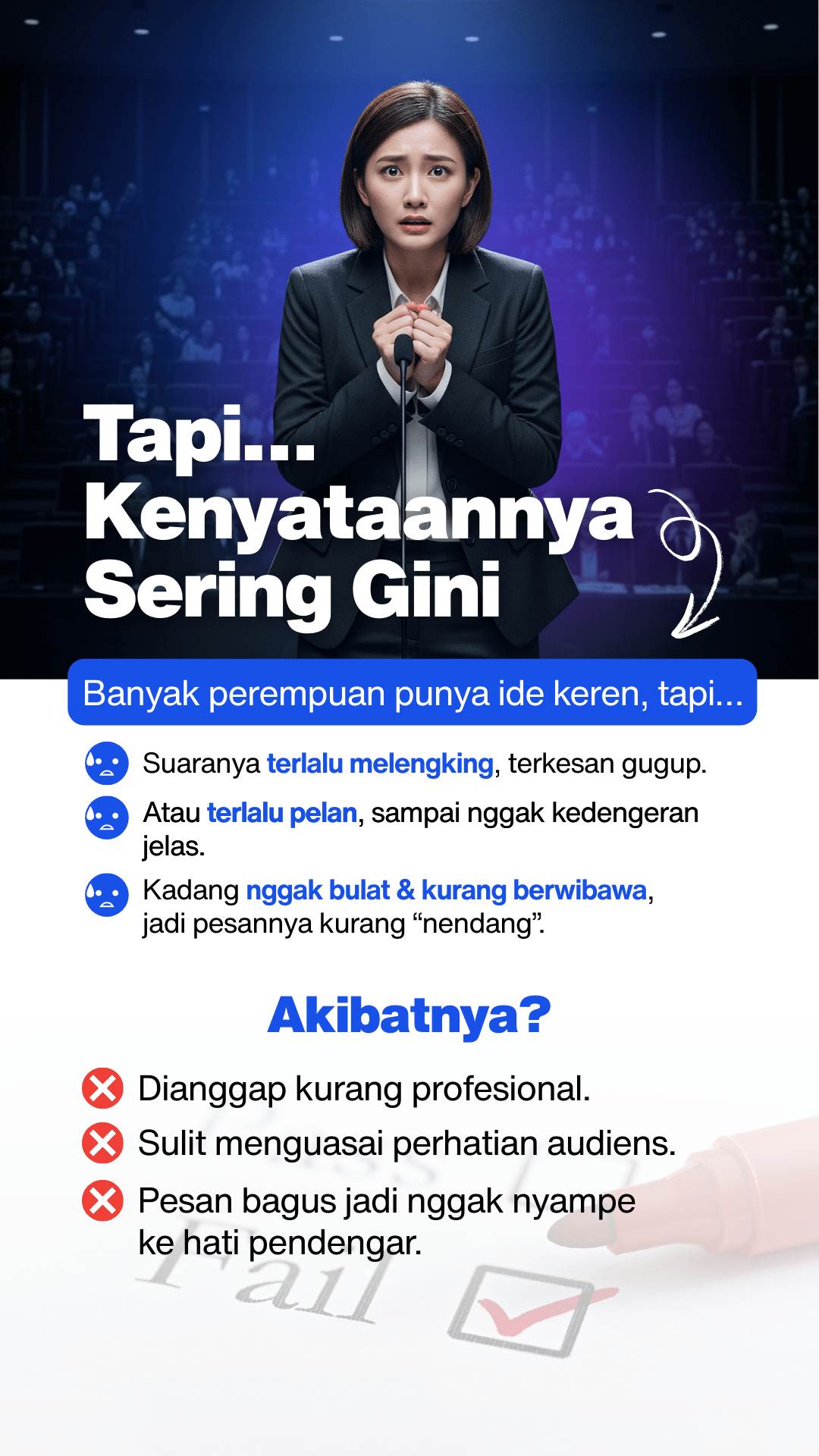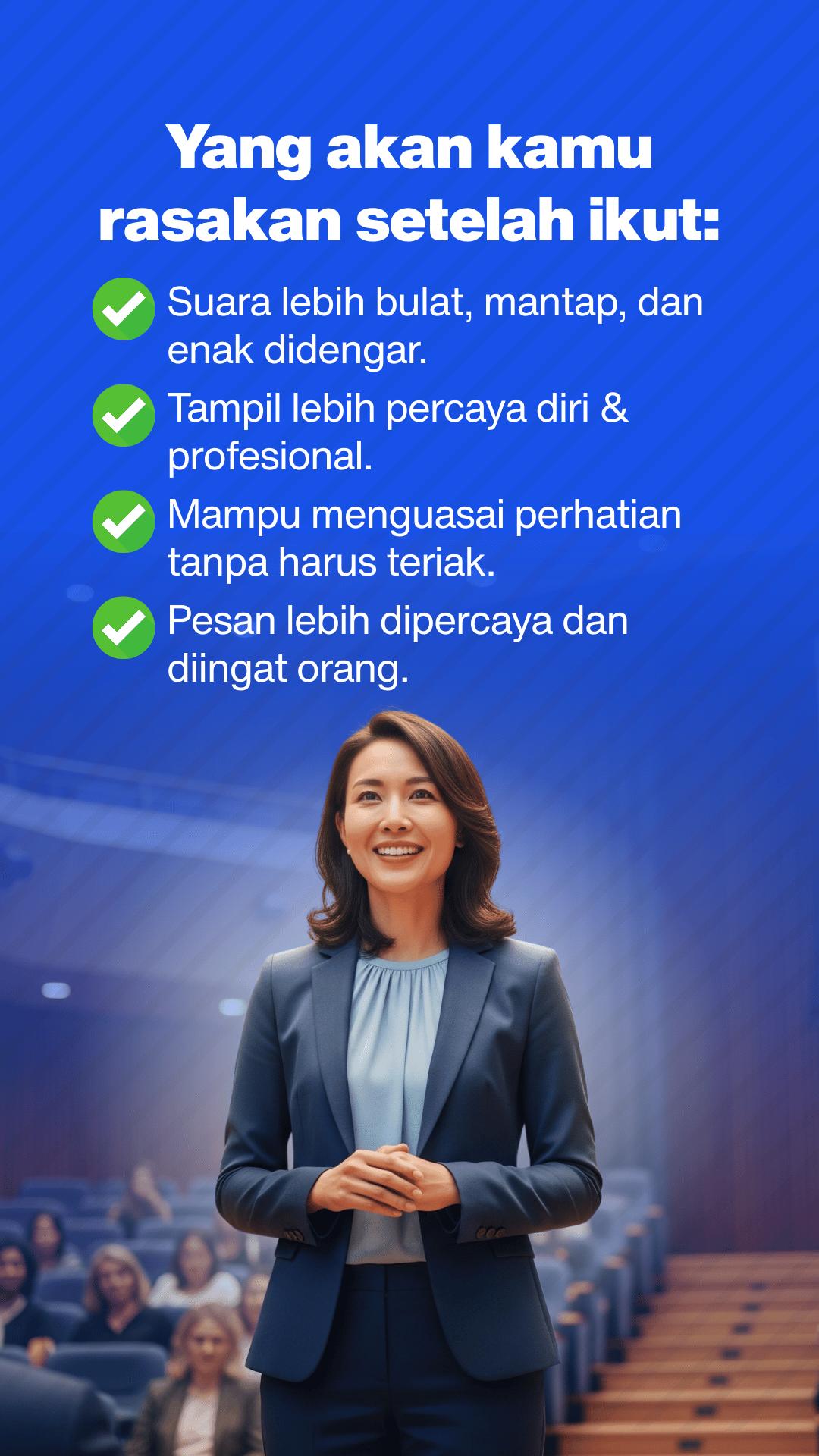 Kamu akan belajar bukan cuma bicara. Tapi berbicara dengan impact. Karena saat kamu menguasai suara, kamu menguasai perhatian!